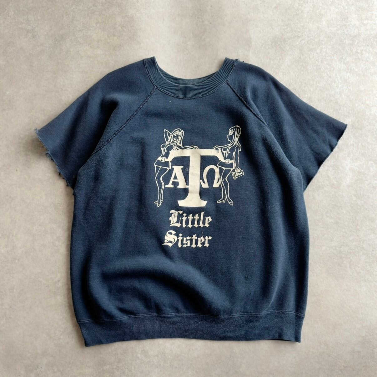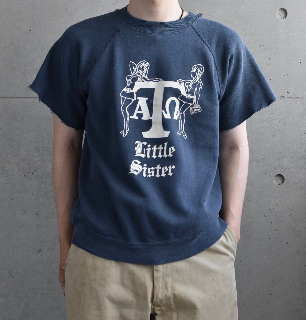 オールドイングリッシュで施された「Little Sister」のプリントに古いタッチの姉妹のデザイン。