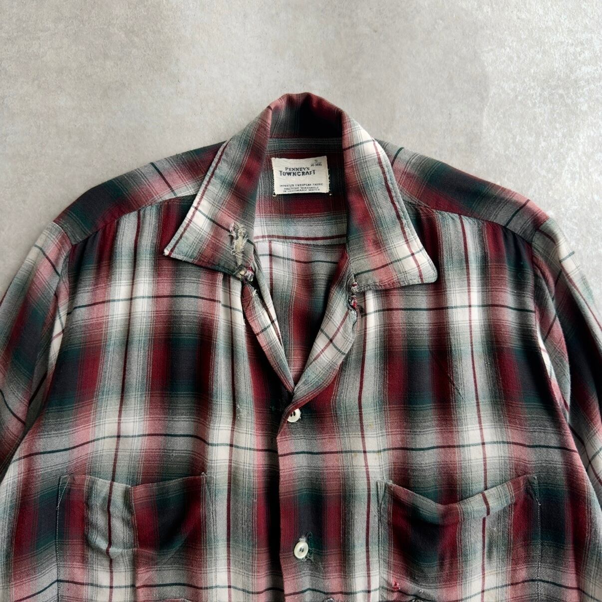 60s TOWNCRAFT Ombre Check Rayon Shirt "Red Green"