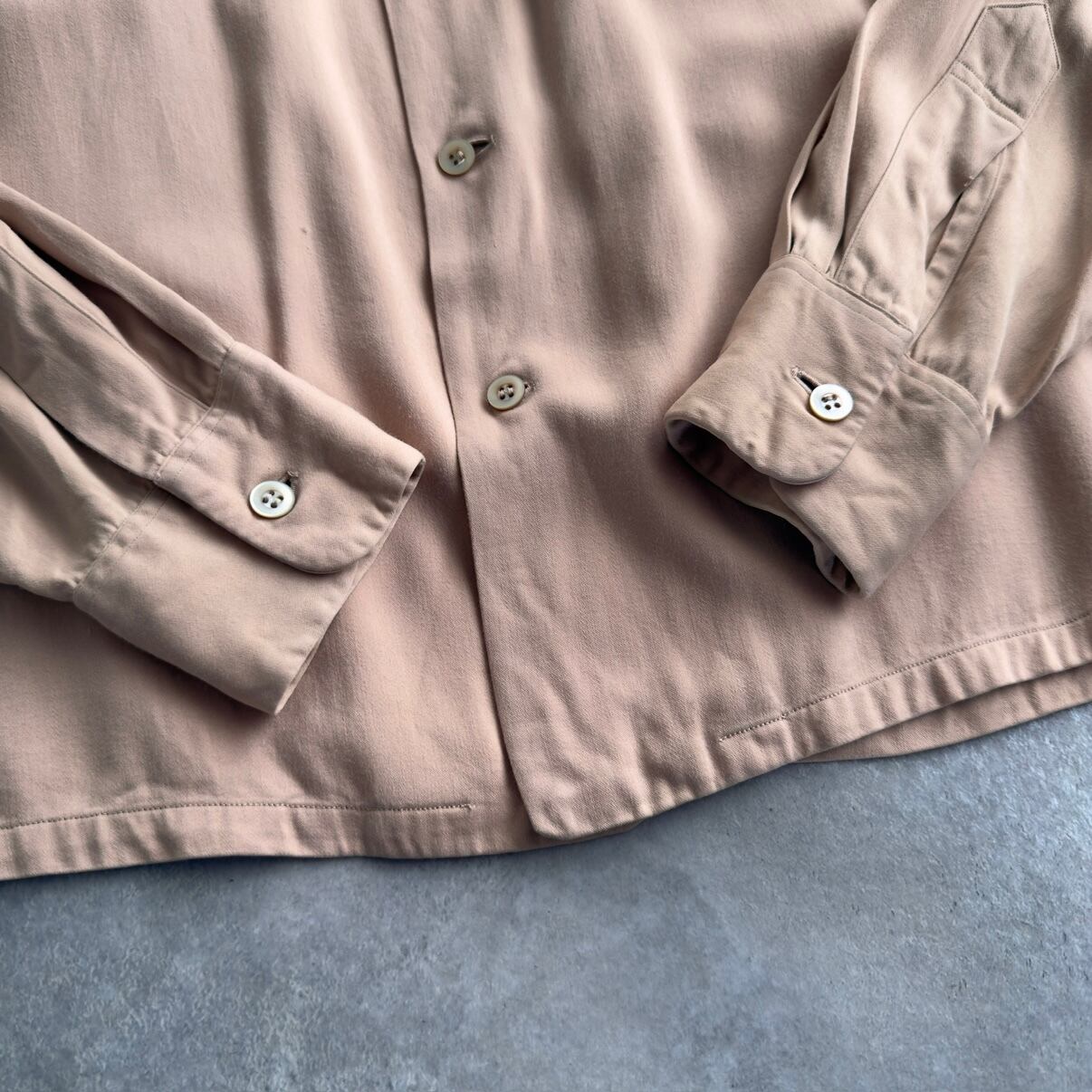 レーヨンギャバジンシャツで評価の高いピンクの中でも珍しいくすんだ色味のスモーキーピンク。