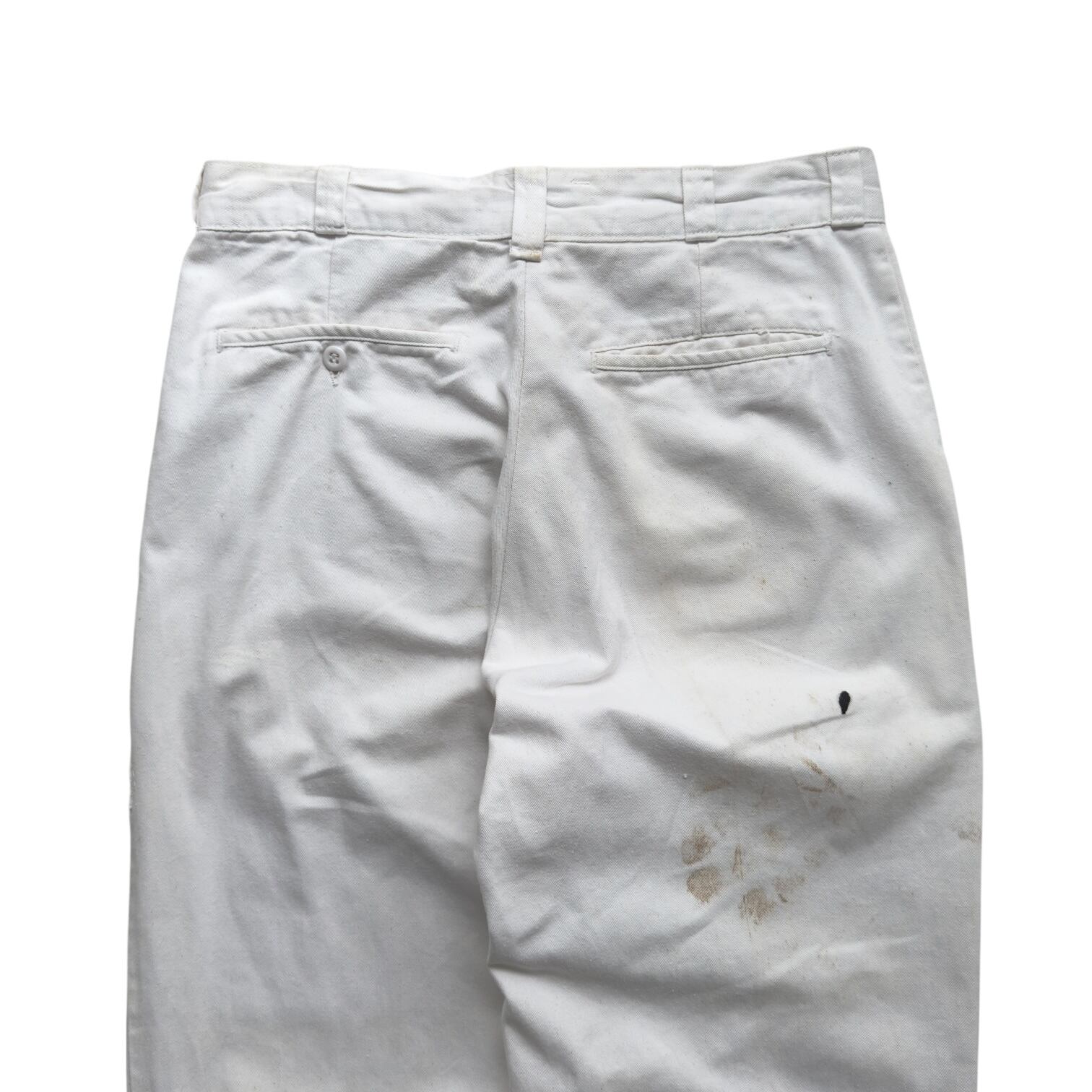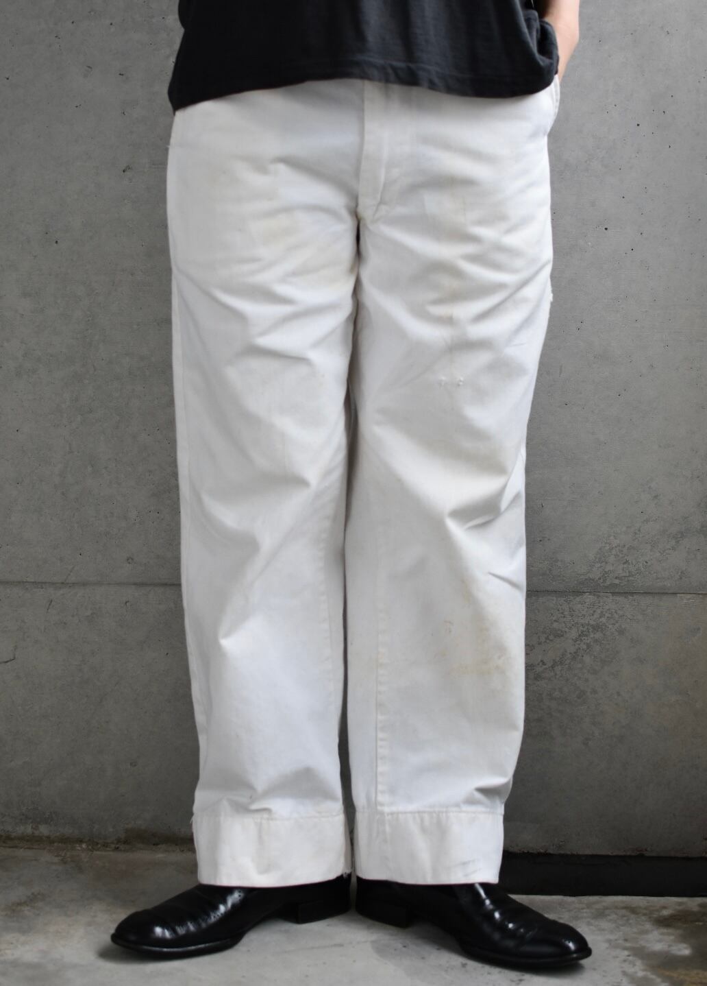 コットン100%の裾幅までしっかり太いシルエットのワークパンツ、中でも球数の少ないホワイトの個体。