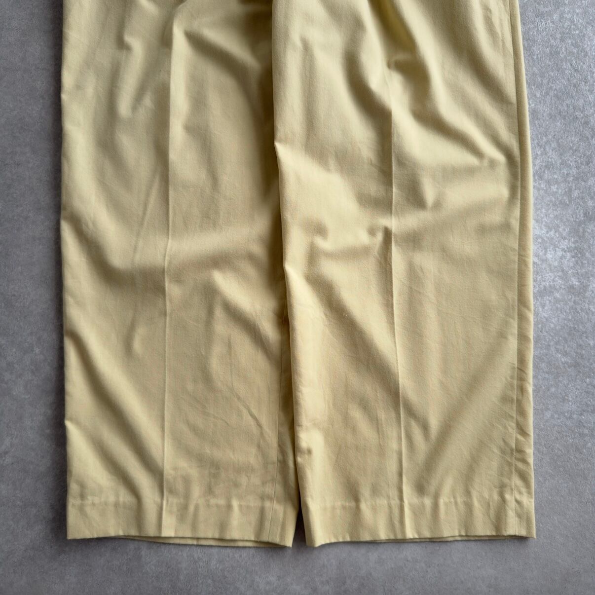 3タックにワイドなストレートシルエット、カラーもレモンイエローの絶妙な色味、ファッションを楽しめる1着かと。