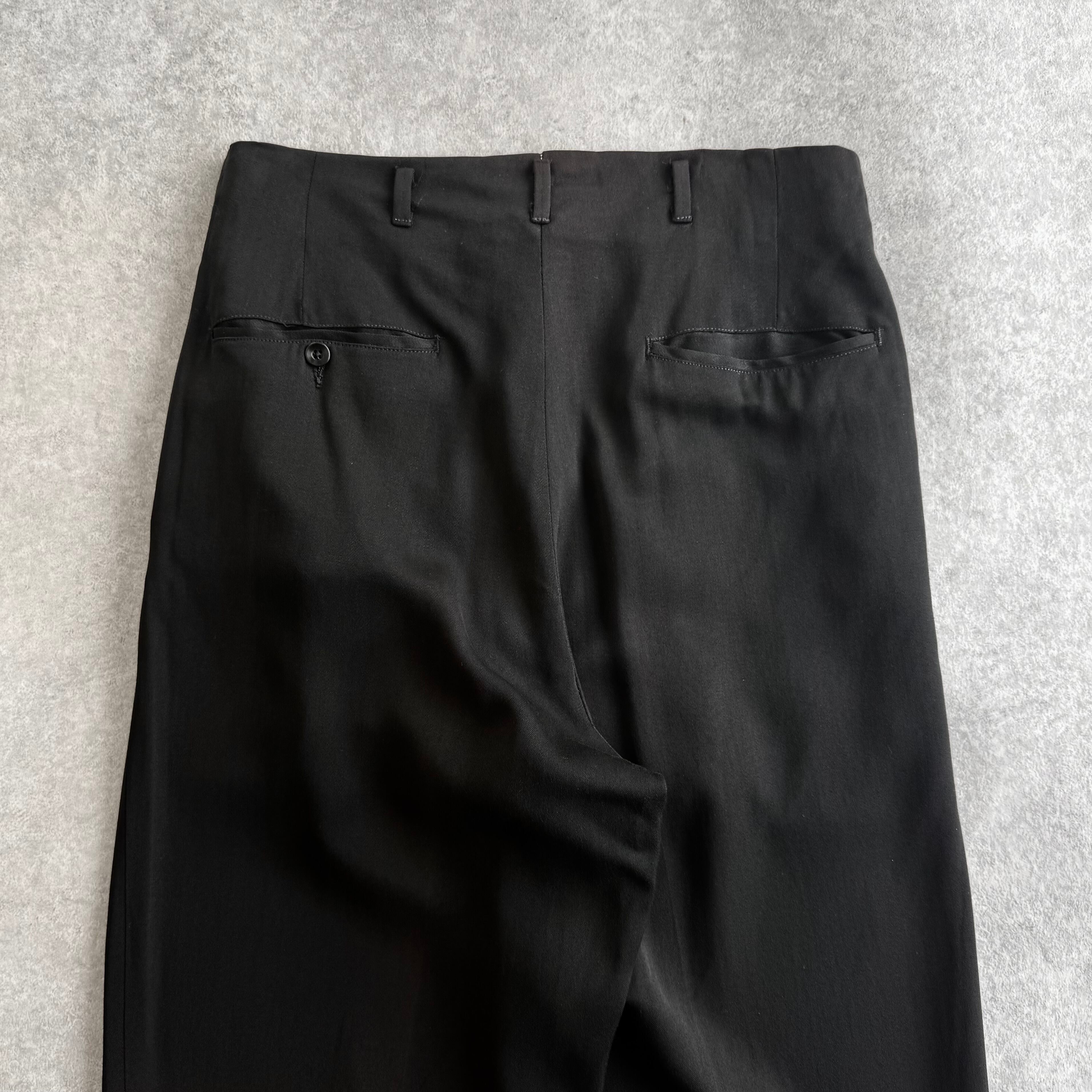 レーヨンギャバジンスラックスの中でもお探しの方が多いブラックの個体、炭黒ではなく正真正銘の漆黒。