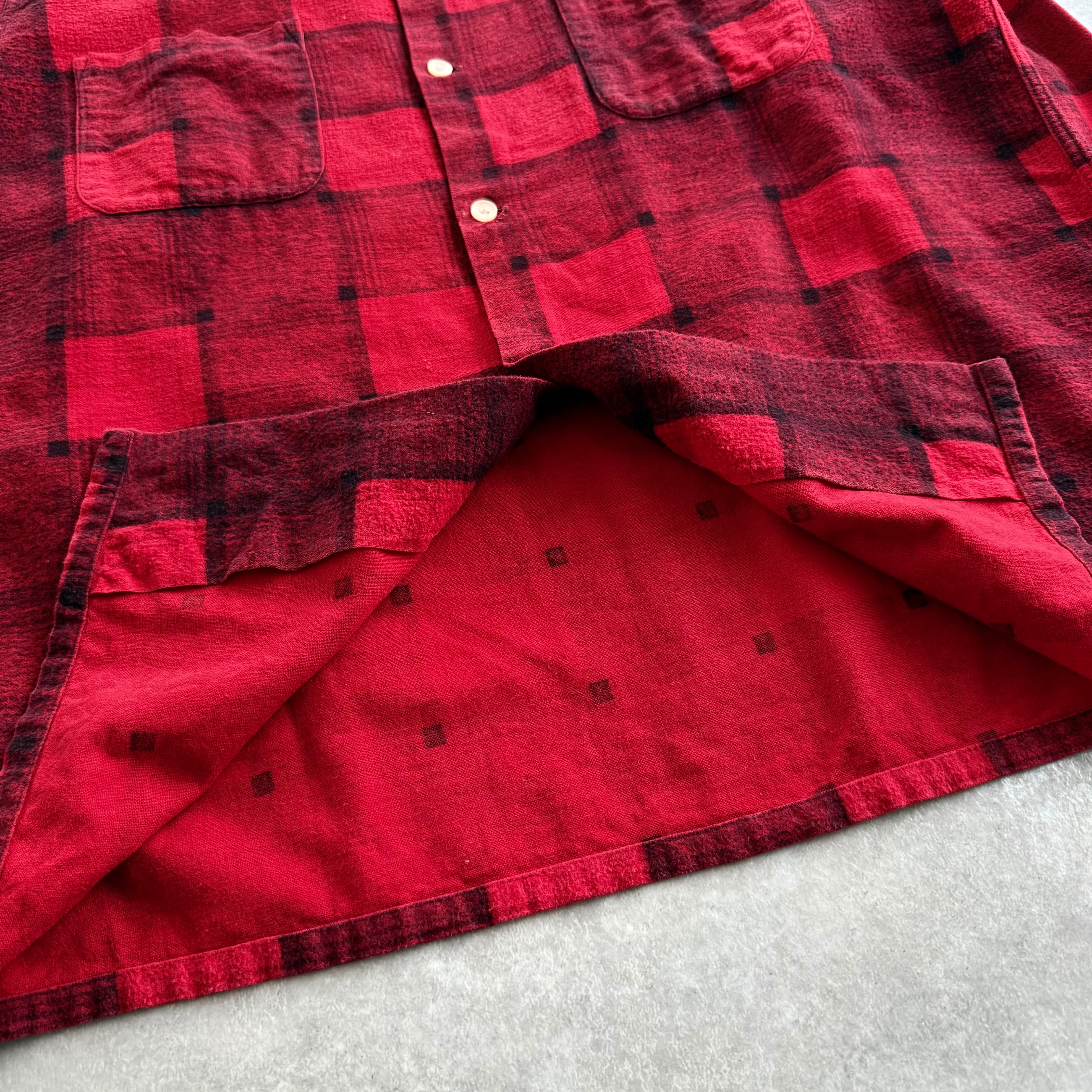 50s~60s Print Flannel Cotton Check Shirt "Black × Red"