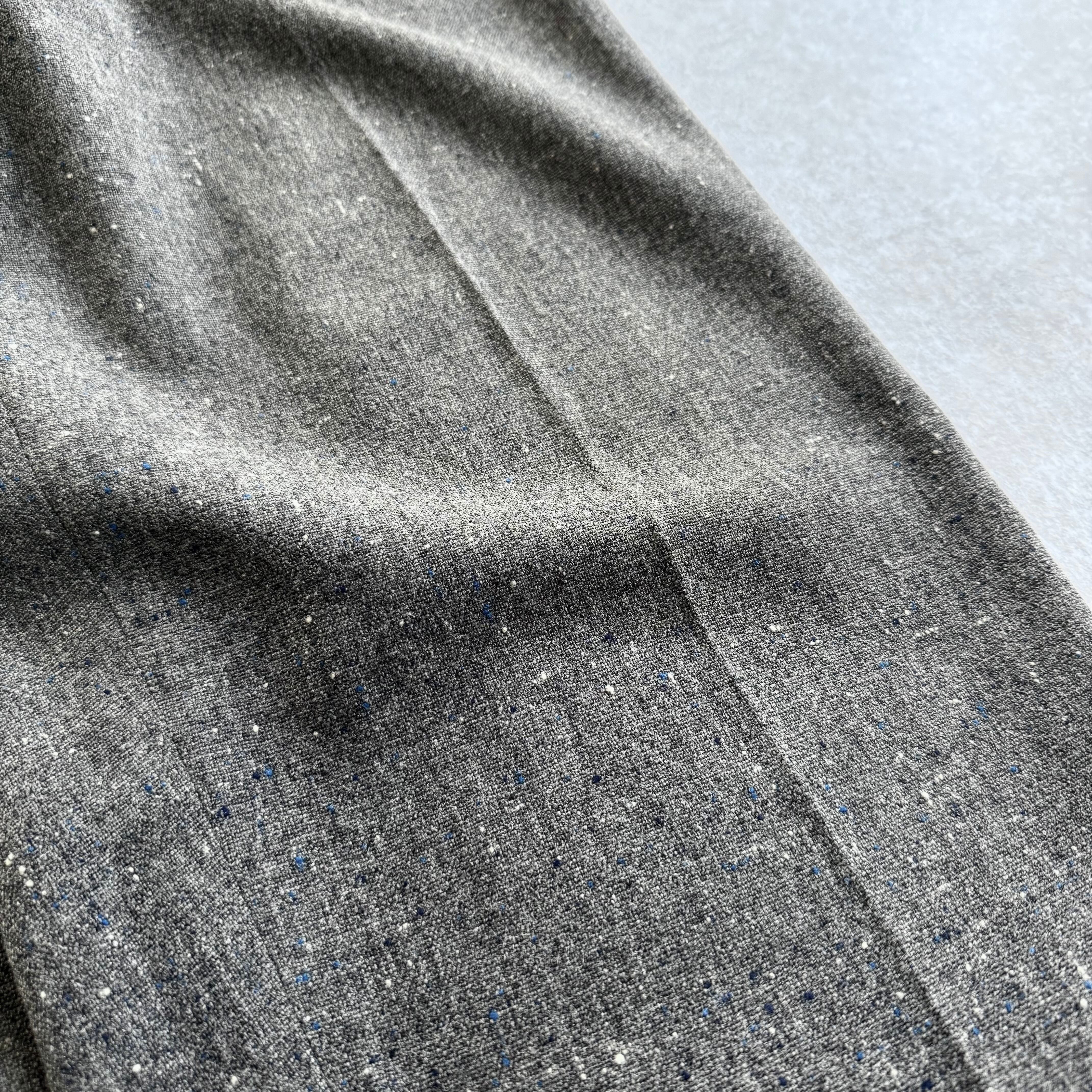 グレーボディに白、黒、水色のネップが入ったお洒落な時代を感じられる生地。