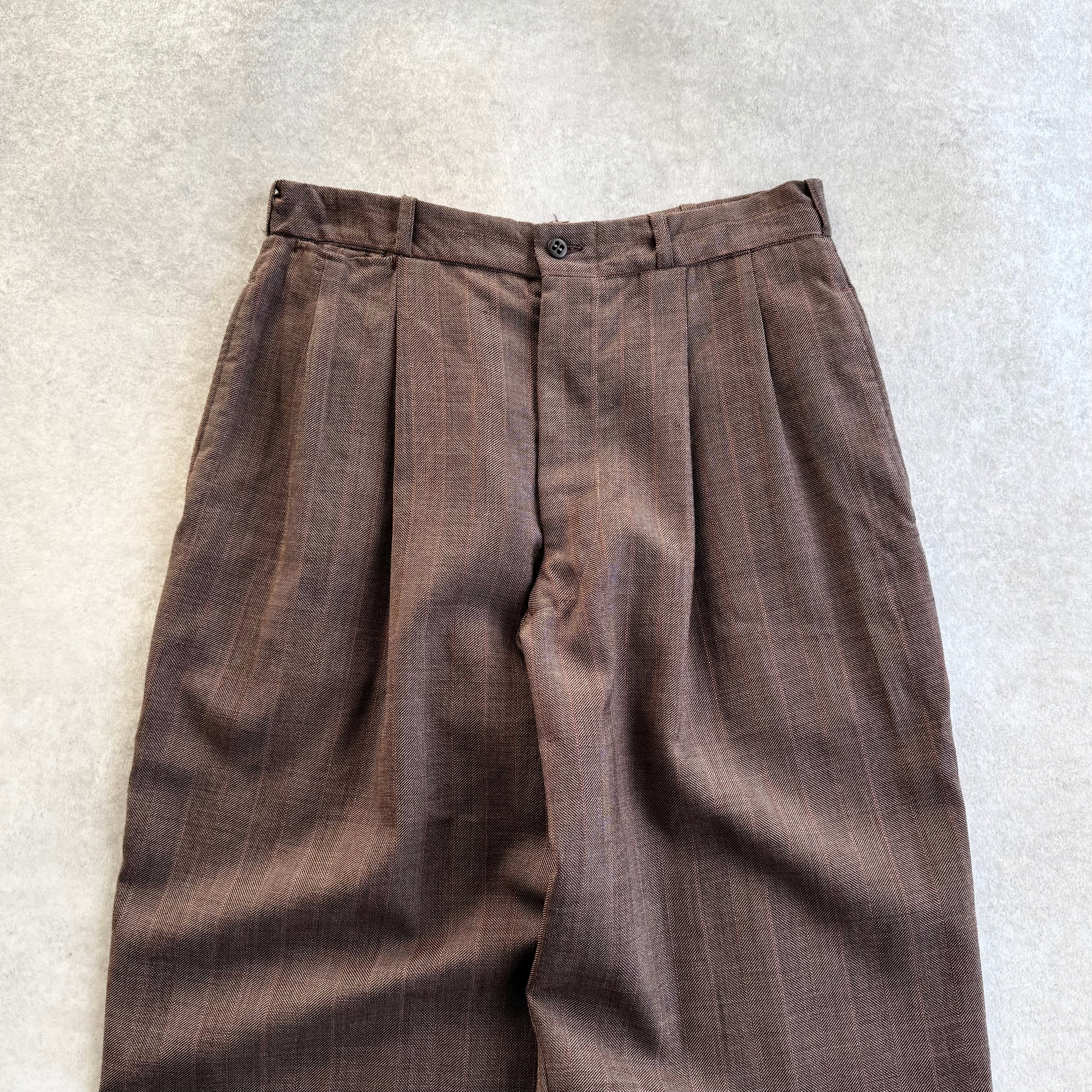 50s~60s Pin Strip Wool Slacks "Brown"
