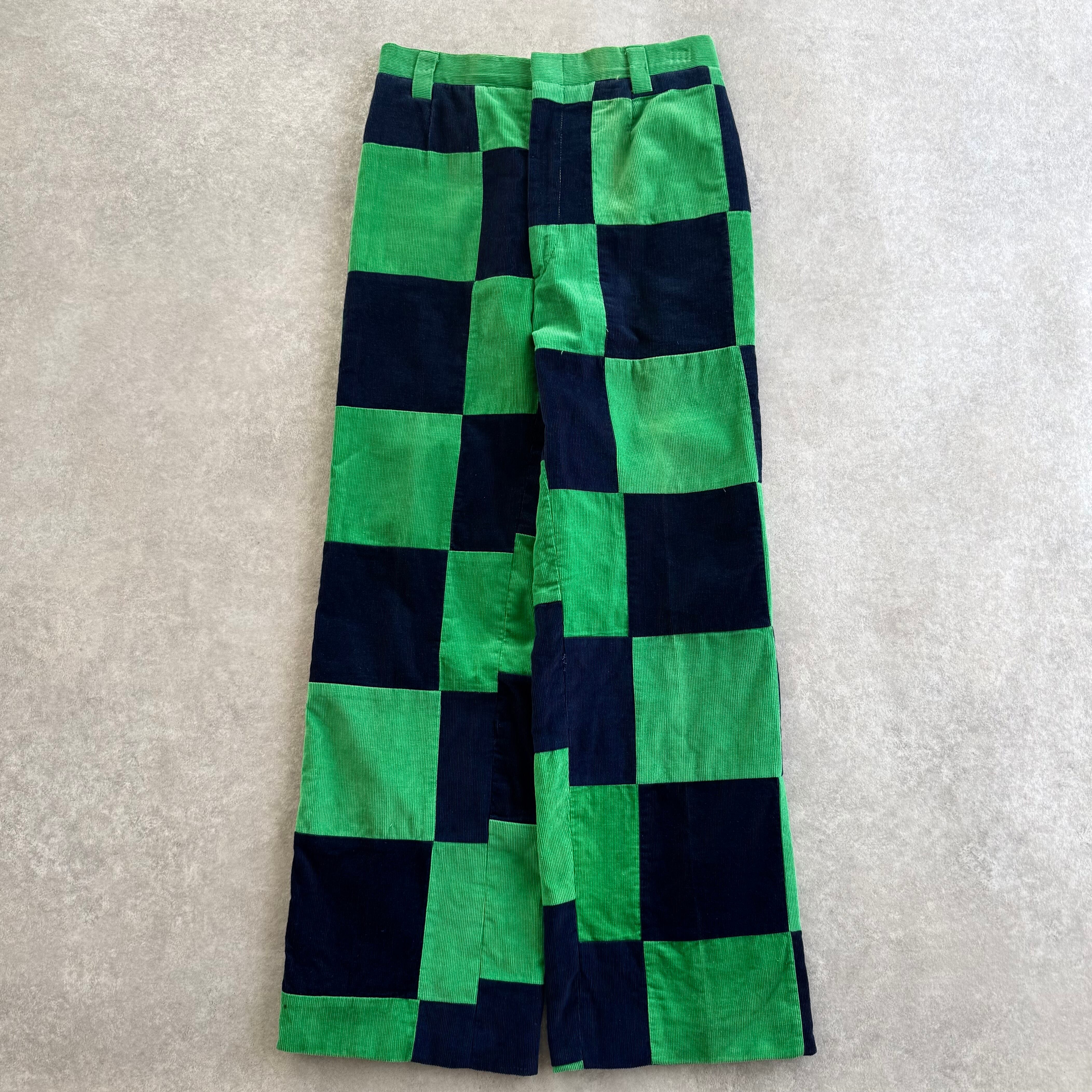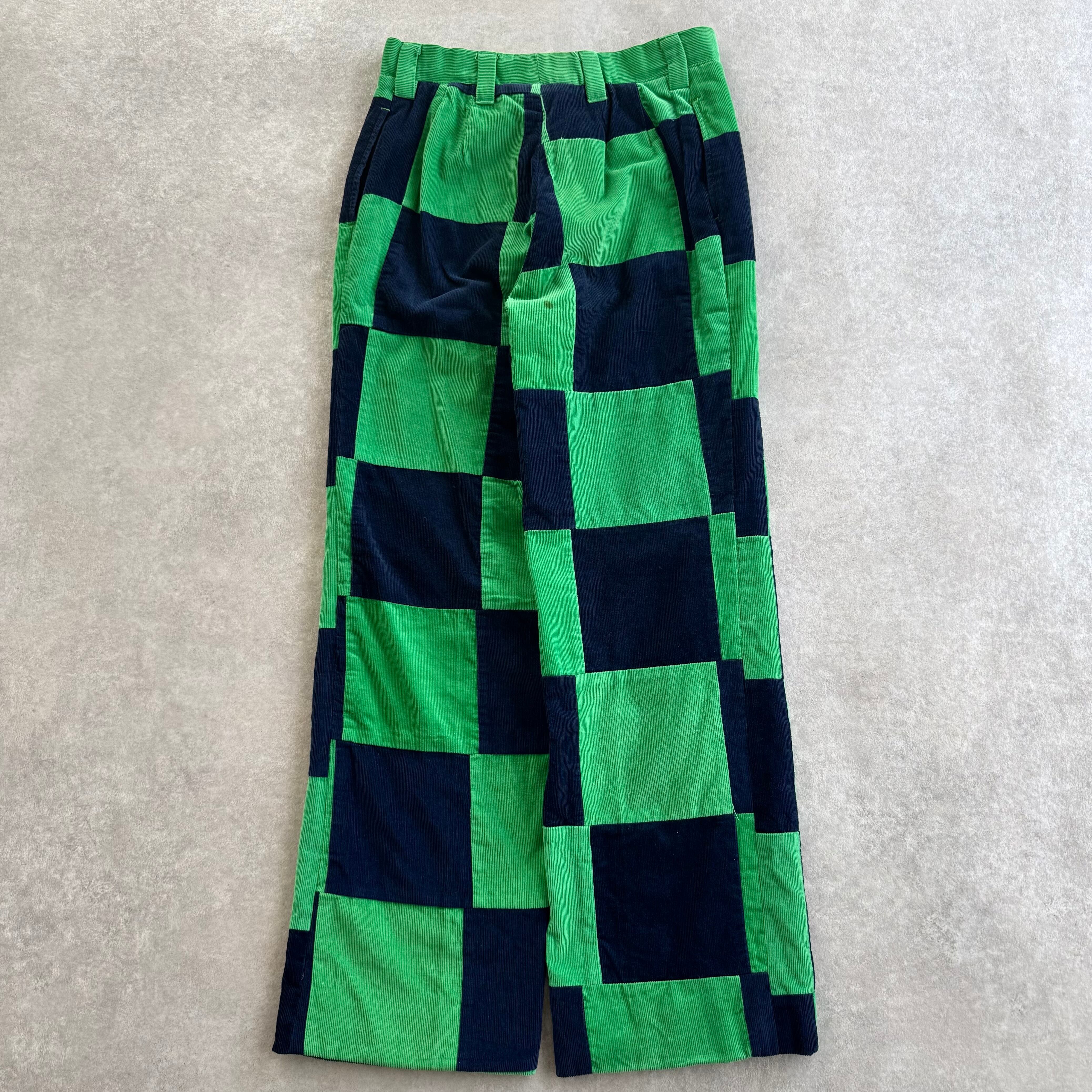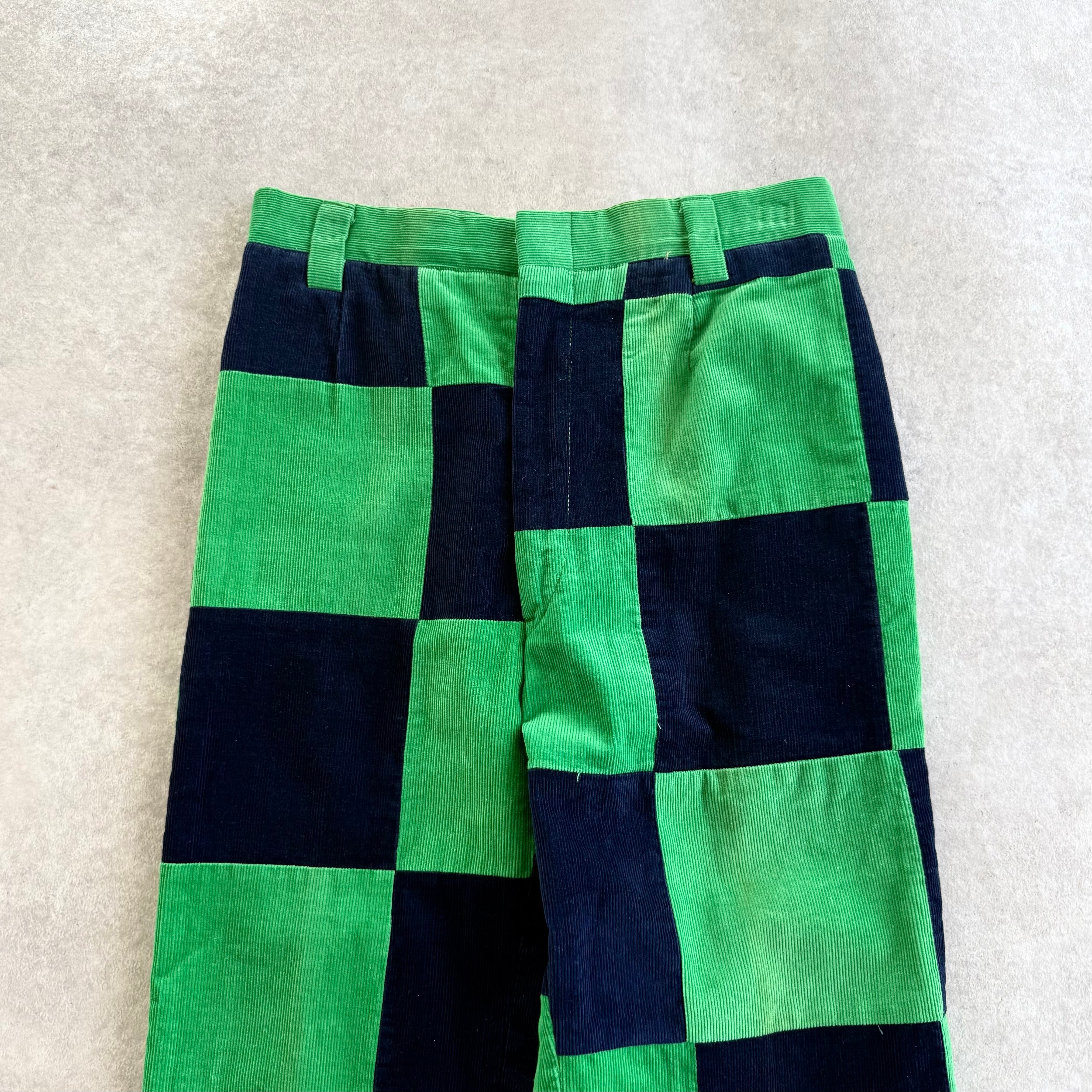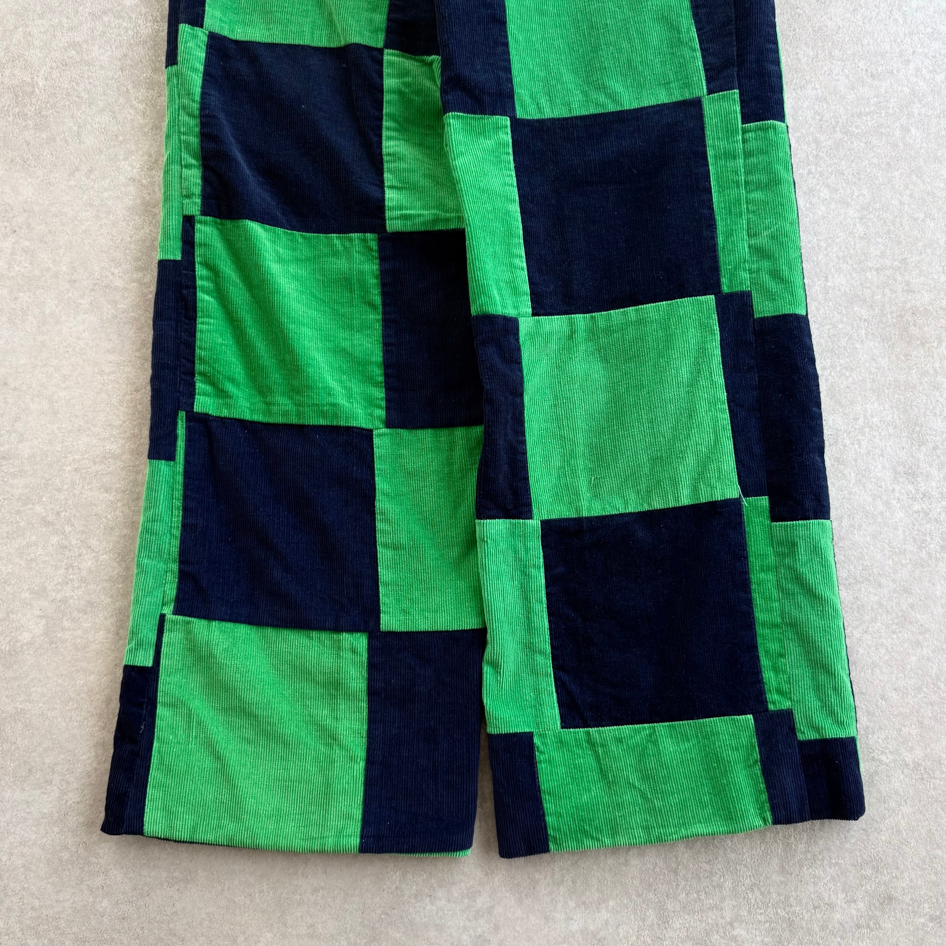 60s Corduroy Patchwork Pants "Green × Navy"