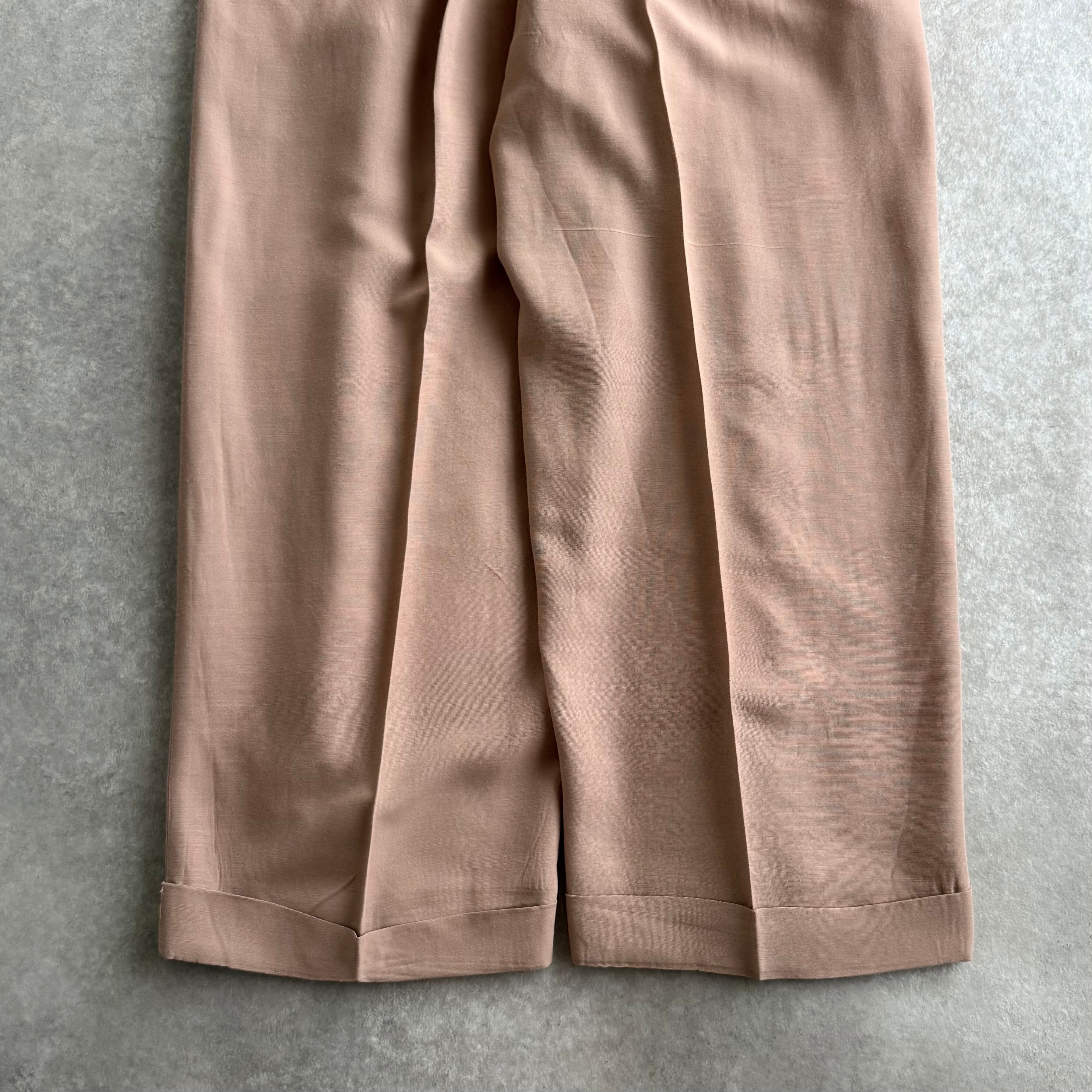 おそらくレーヨンとウールの混紡素材、ハリが有りながらもしっかりドレープ感を感じられる生地。