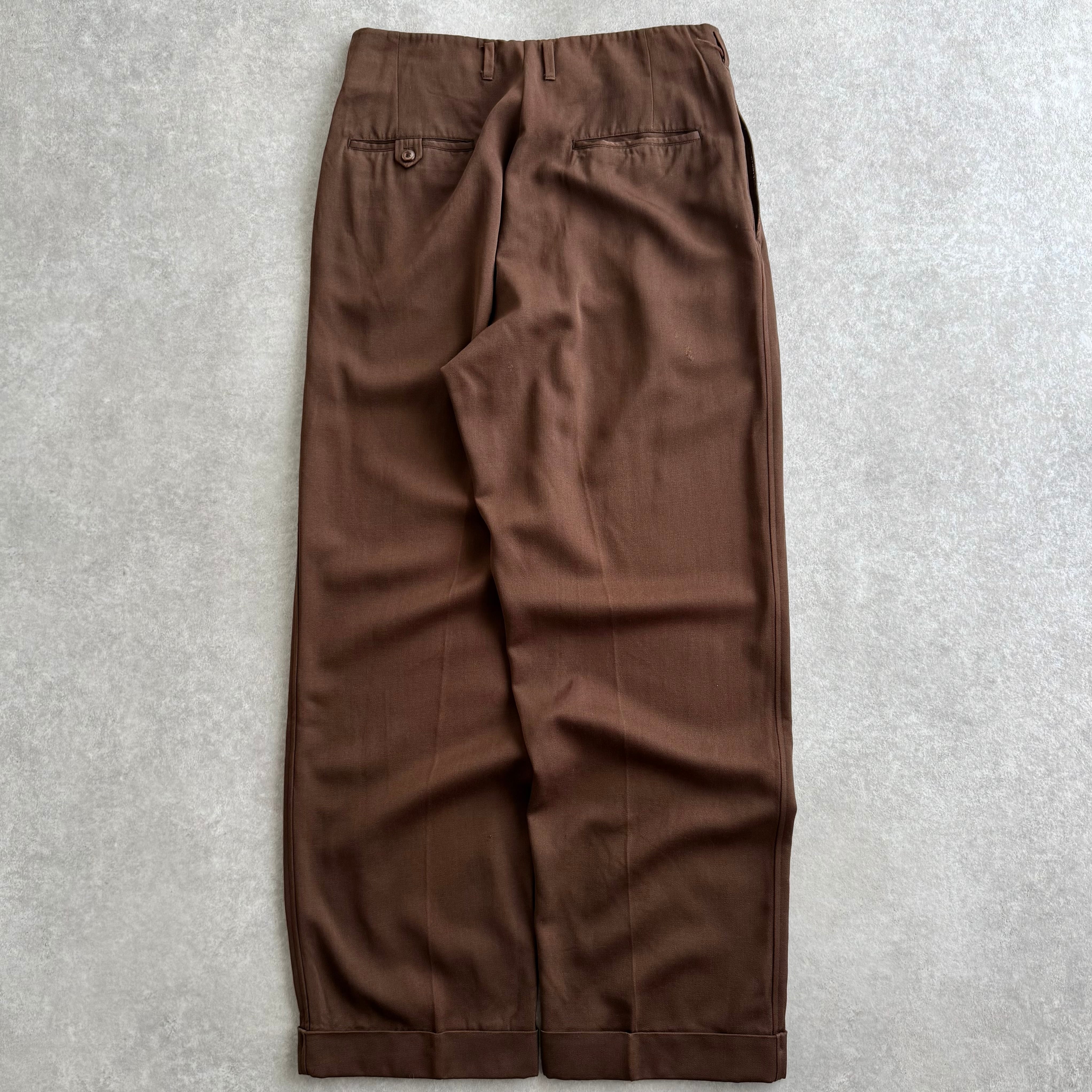 50s Rayon Wool Gabardine Slacks "Brown"